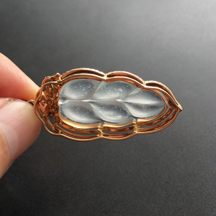 (超值推荐)冰玻种无色镶玫瑰金钻石金枝玉叶胸坠