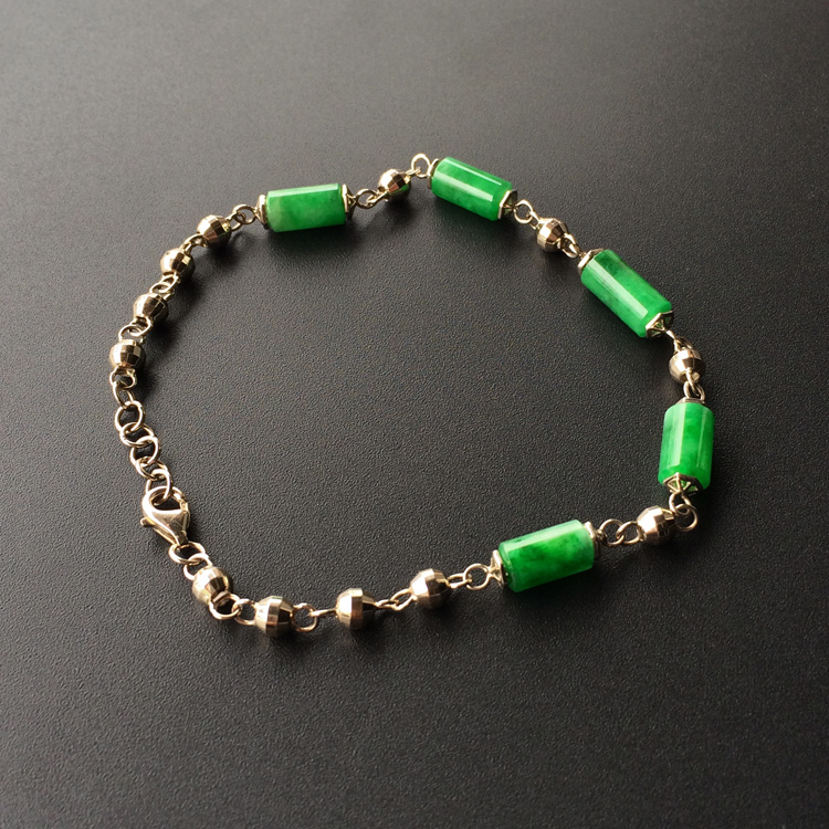 首页 >> (超值推荐)糯冰种翠色18k金路路通手链