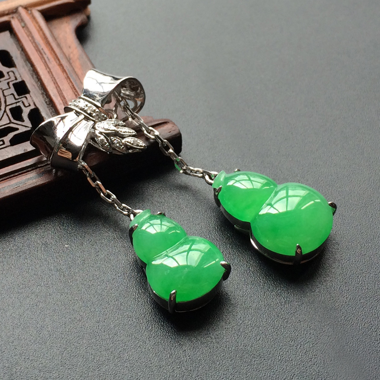 首页 >> (超值推荐)糯冰种翠色镶白金钻石福禄双全胸坠