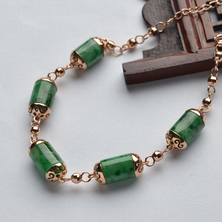 首页 >> (超值推荐)糯冰种飘翠镶玫瑰金路路通达手链