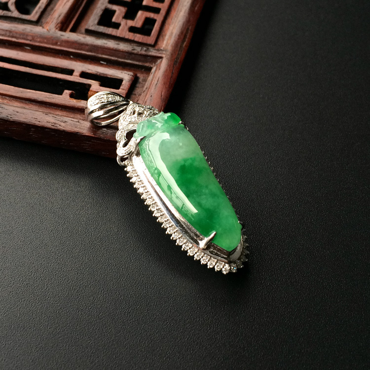 首页 >> (超值推荐)冰种飘翠镶白金钻石福瓜胸坠