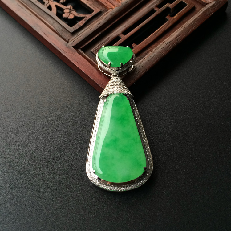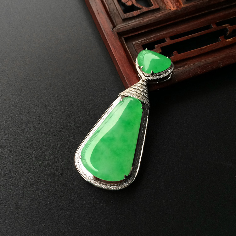 首页 >> (超值推荐)冰种翠色镶白金钻石平安牌胸坠