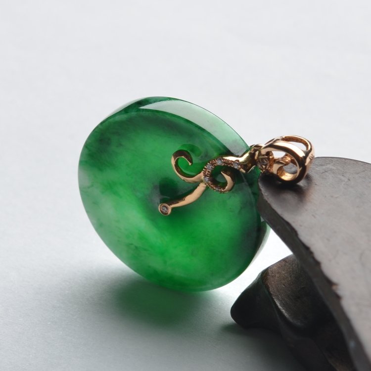 首页 >> (超值推荐)糯冰种阳绿镶玫瑰金平安扣胸坠