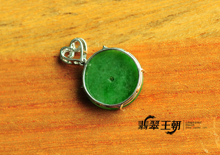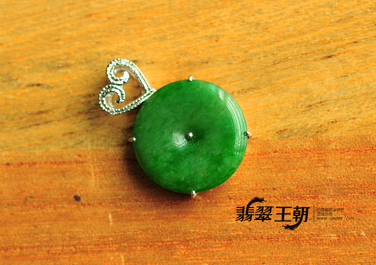 首页 >> 糯冰种浓绿缅甸翡翠包白金平安扣挂件