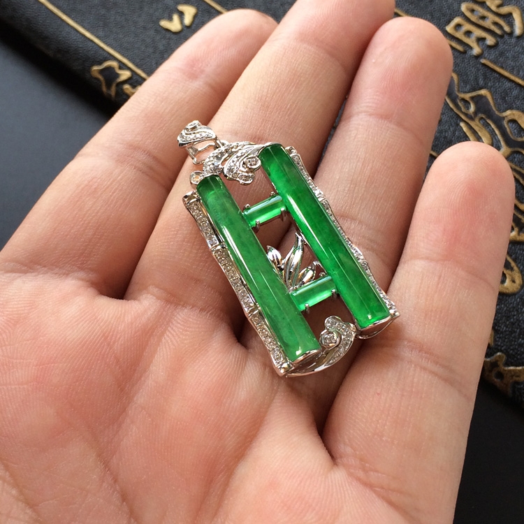 首页 >> (超值推荐)冰种翠色镶白金钻石节节高胸坠