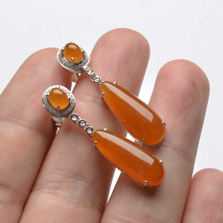 首页 >> (超值推荐)冰种红黄翡镶白金钻石水滴耳坠