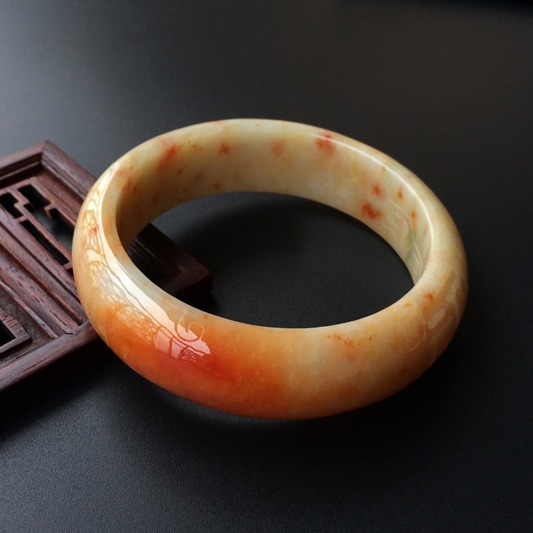 (超值推荐)糯冰种红黄翡雕花手镯(56mm)