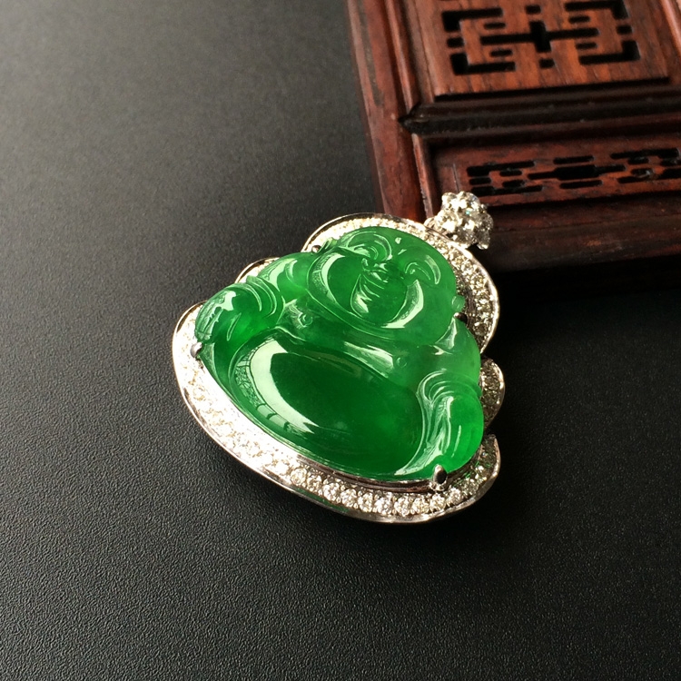 首页 >> (超值推荐)冰种阳绿镶白金钻石玉佛胸坠