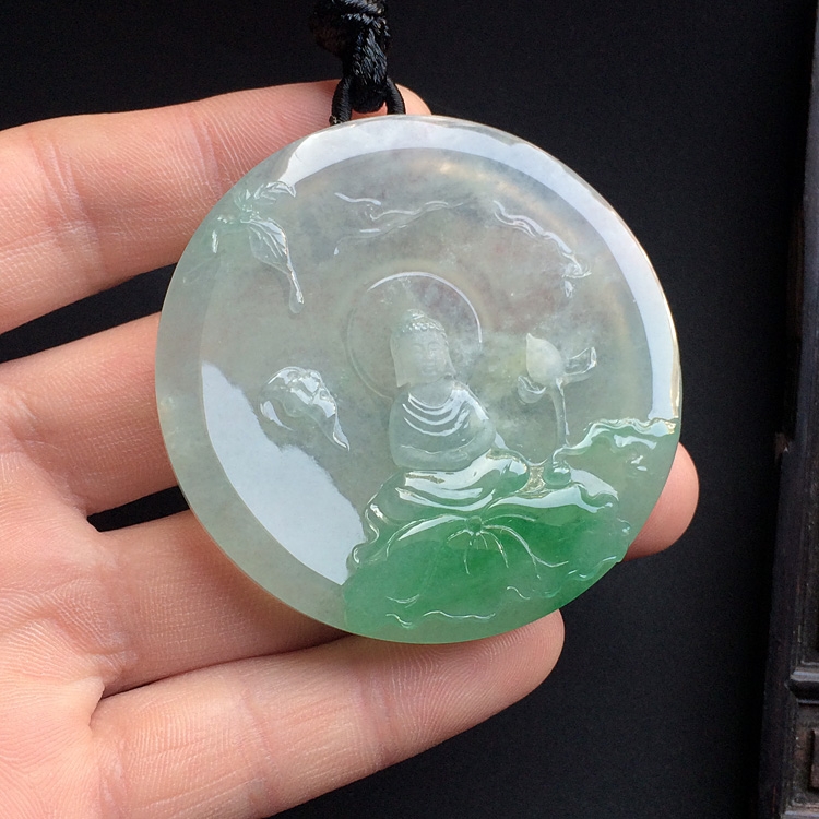 首页 >> (超值推荐)冰种飘绿花阿弥陀佛挂件