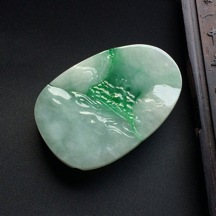 (超值推荐)(高松峰大师作品)糯冰种飘翠问道挂件