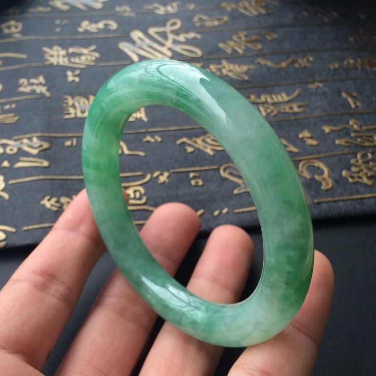 (超值推荐)糯冰种飘翠圆条手镯(58.5mm)