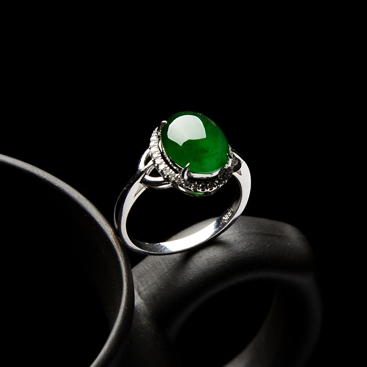 首页 >> 冰种绿晴水镶白金钻石戒指