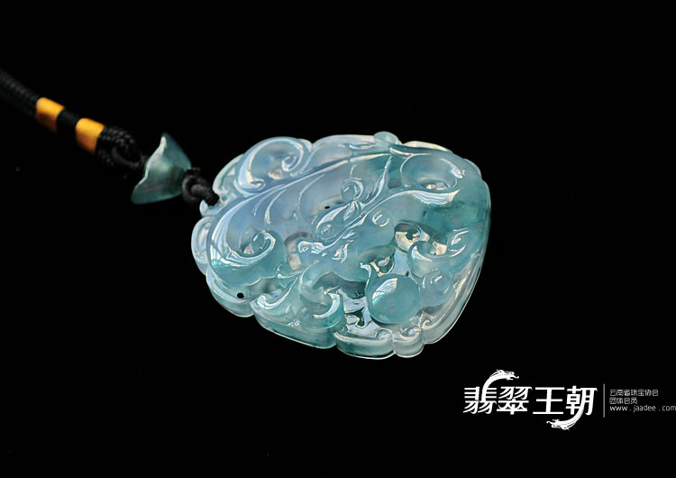 冰种蓝晴水飘花缅甸翡翠龙凤牌挂件