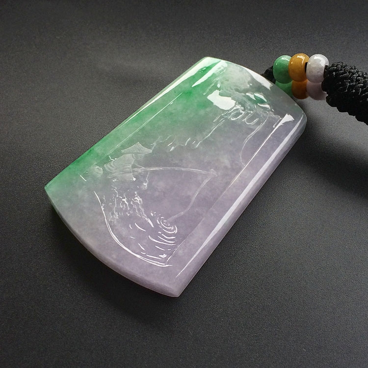 首页 >> (超值推荐)糯冰种淡春带彩独钓寒江山水挂件