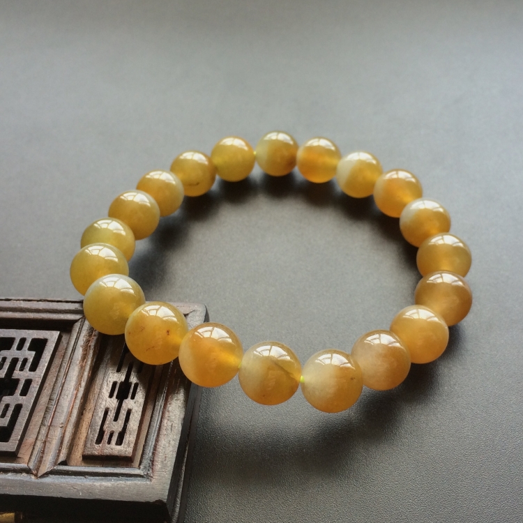 首页 >> (超值推荐)糯冰种褐黄翡圆珠手链