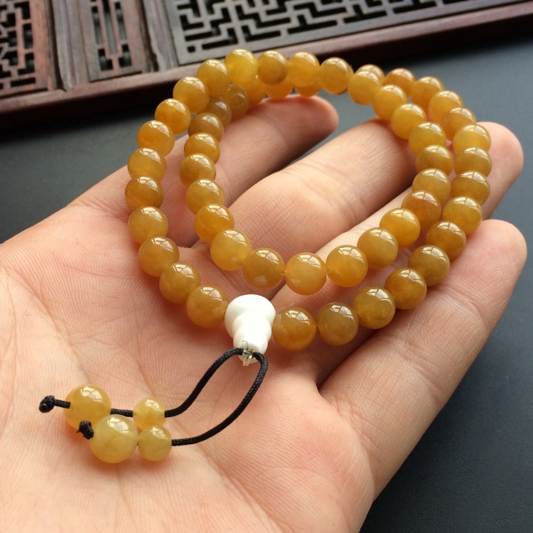 首页 >> (超值推荐)糯冰种褐黄翡圆珠手链