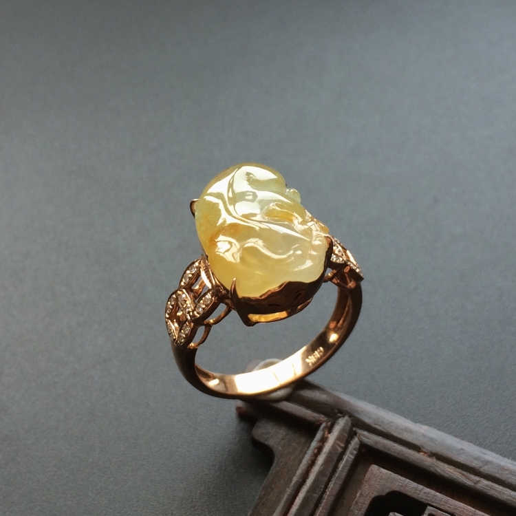首页 >> (超值推荐)冰种黄翡镶玫瑰金钻石貔貅戒指