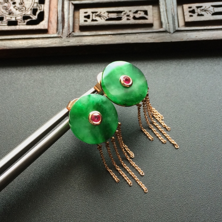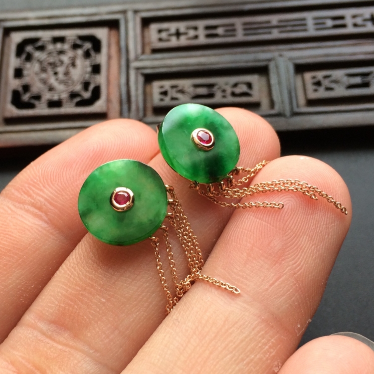 首页 >> (超值推荐)糯冰种翠色镶玫瑰金平安扣耳钉