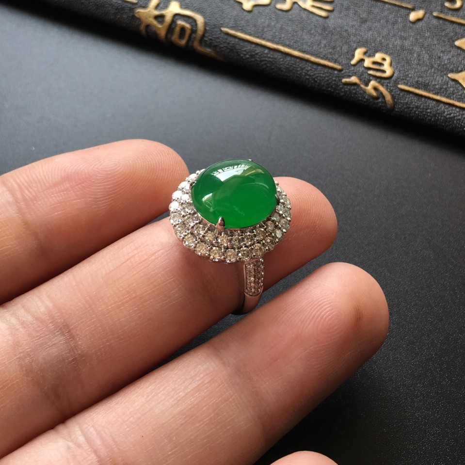 (超值推荐)冰种阳绿镶白金钻石戒指