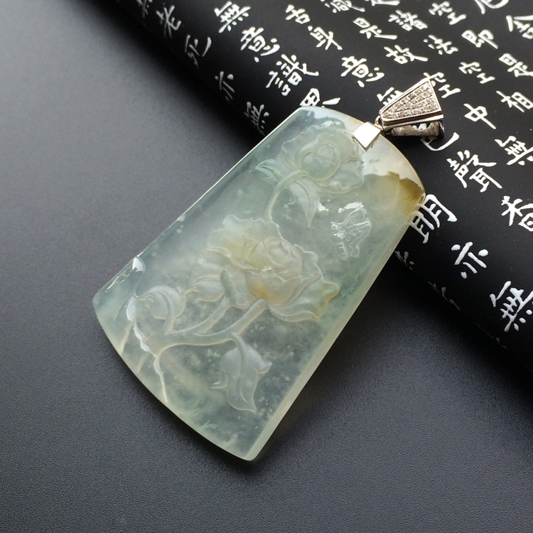 首页 >> 冰玻种飘黄翡蝶恋花挂件
