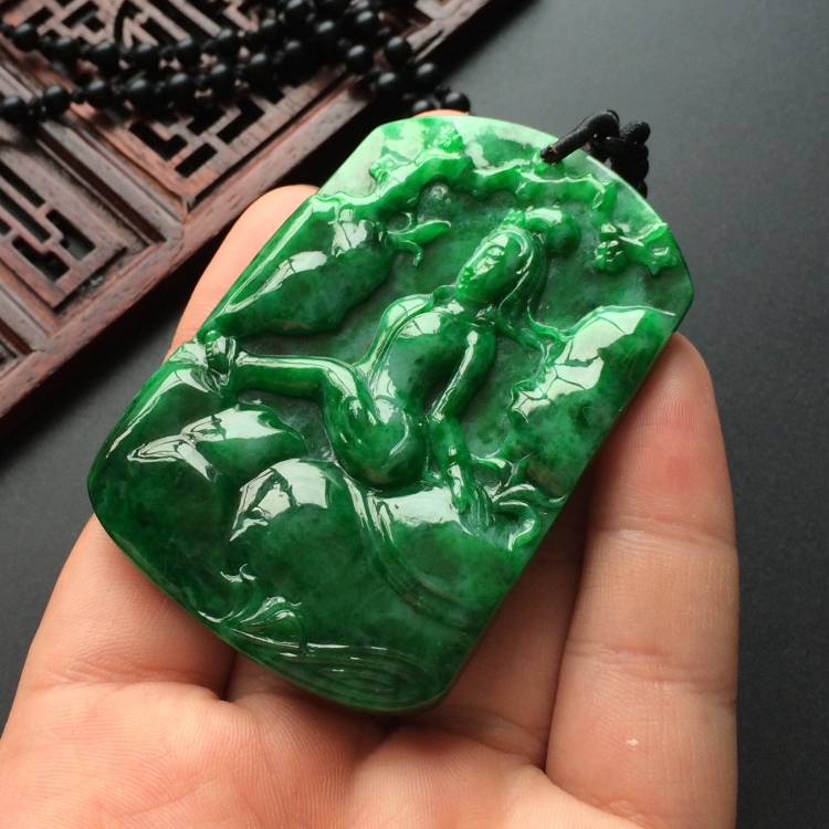 首页 >> (超值推荐)糯冰种浓绿美人如玉挂件