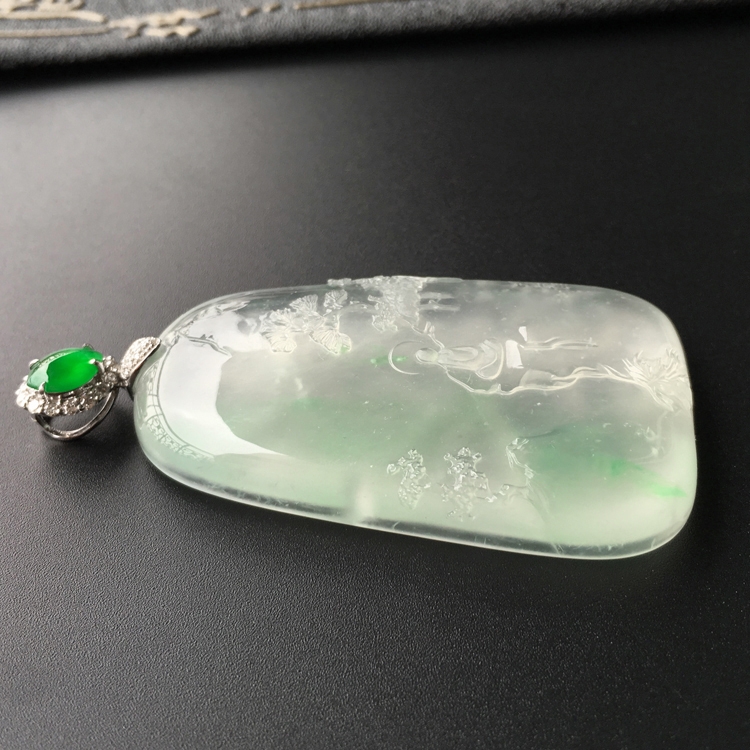 首页 >> (超值推荐)冰玻种飘翠松下静悟挂件(金扣)