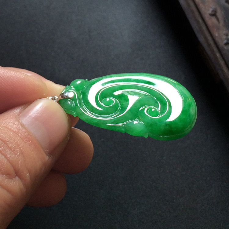 首页 >> (超值推荐)糯冰种阳绿如意挂件