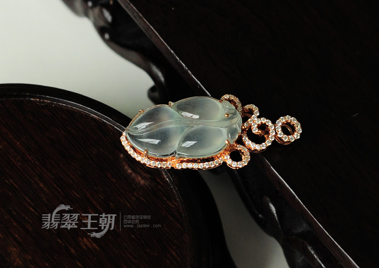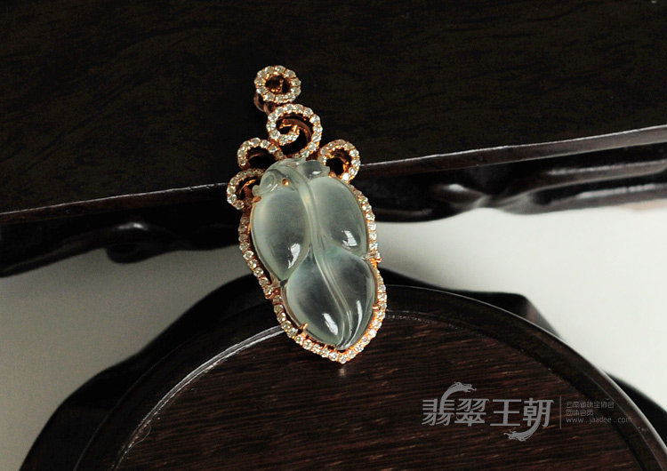 玻璃种缅甸翡翠镶玫瑰金“金枝玉叶”挂件(真钻)