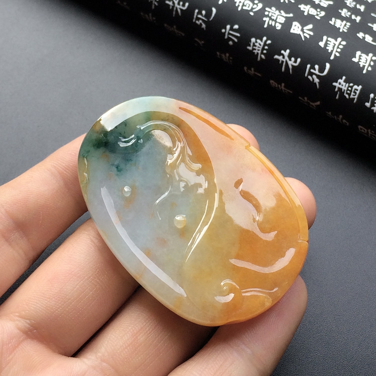 首页 >> (超值推荐)糯冰种红黄翡飘花百年好合挂件