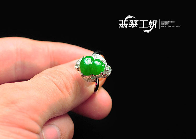 冰种满绿缅甸翡翠包白金葫芦戒指(真钻)