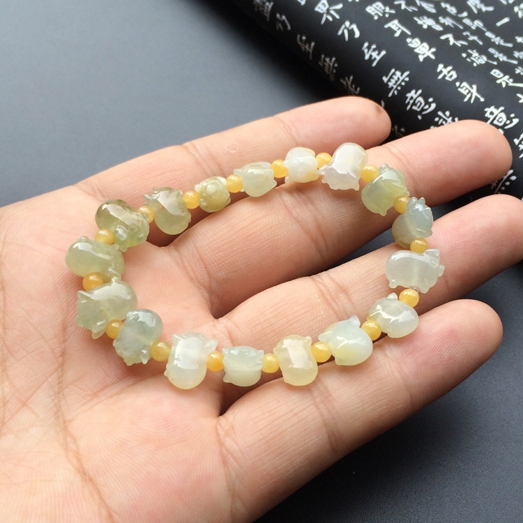首页 >> (超值推荐)糯冰种淡黄翡福猪手链