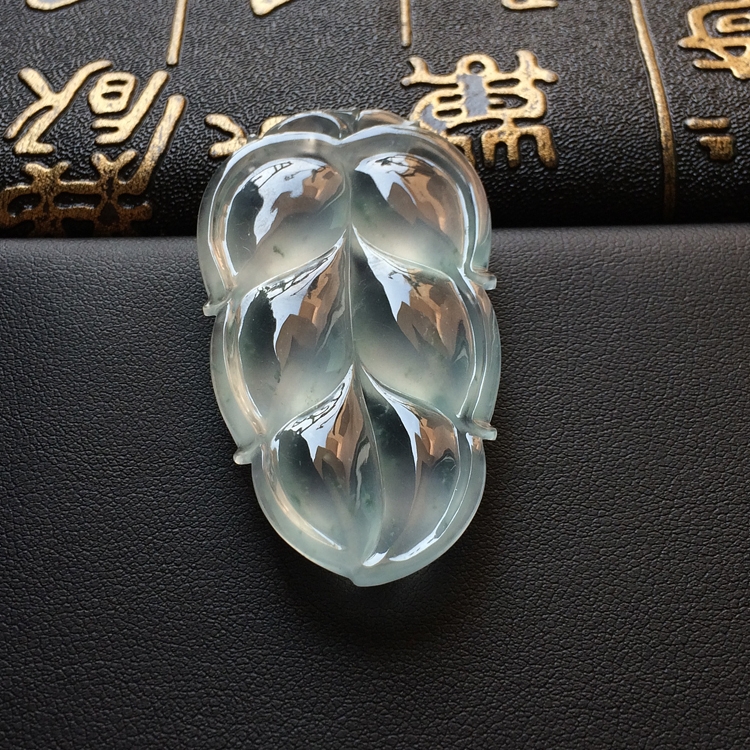 首页 >> (超值推荐)冰玻种略飘花玉叶挂件