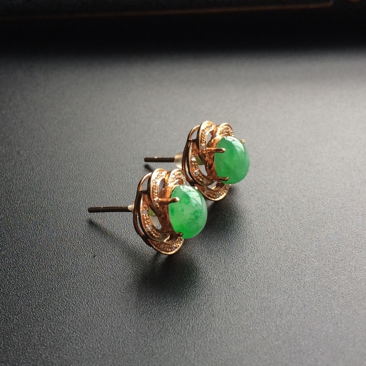 首页 >> (超值推荐)糯冰种翠色镶玫瑰金钻石耳钉