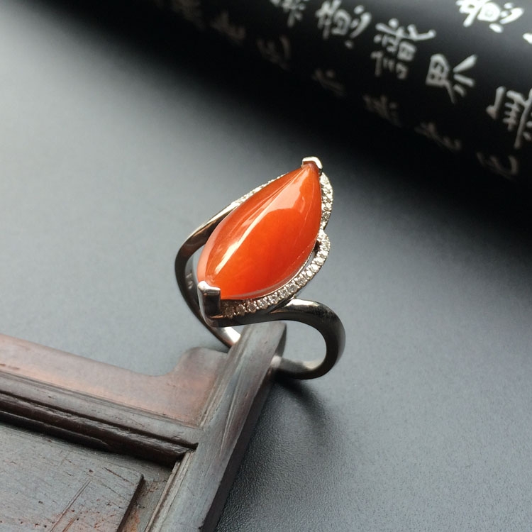 首页 >> (超值推荐)糯冰种红黄翡镶白金钻石随形戒指