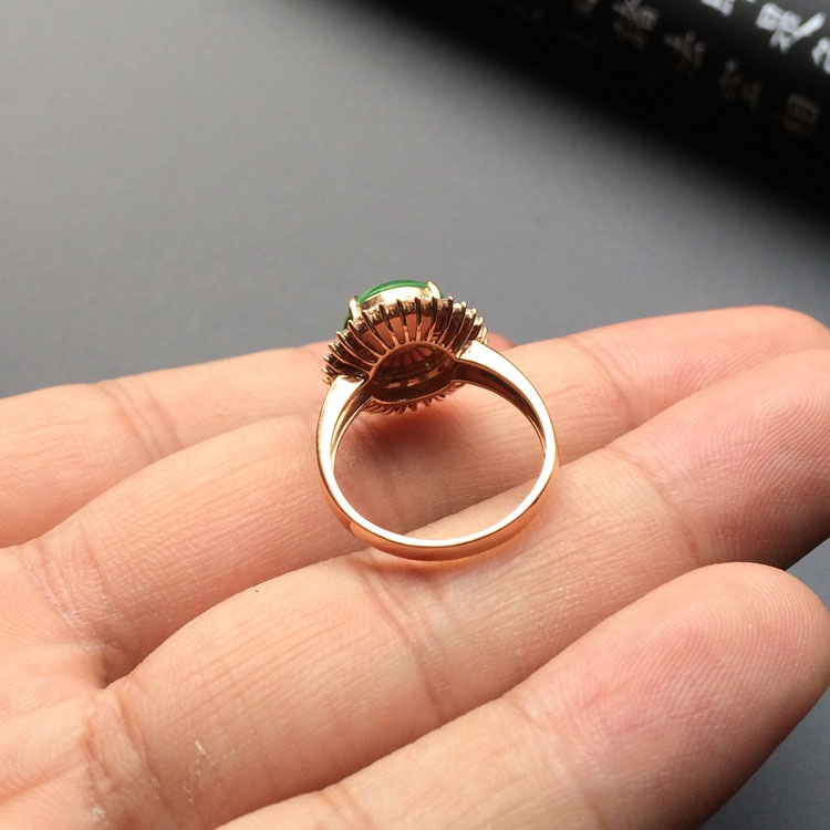 首页 >> 冰种绿晴水镶玫瑰金钻石戒指