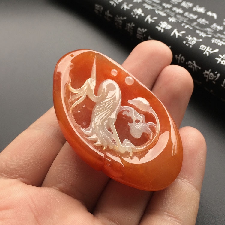 首页 >> (超值推荐)糯冰种红黄翡一路连科挂件