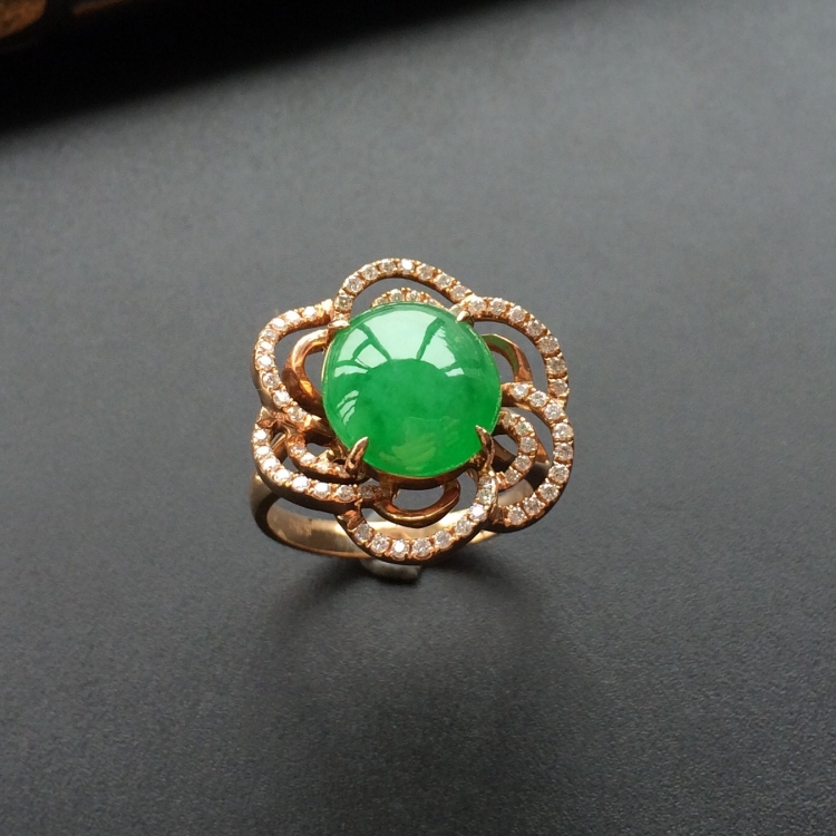 首页 >> (超值推荐)糯冰种翠色镶玫瑰金钻石繁花戒指