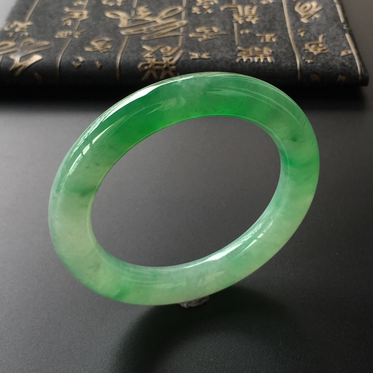 首页 >> (超值推荐)糯冰种飘阳绿圆条手镯(57mm)