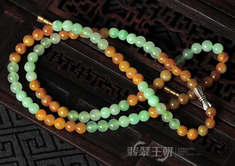 首页 >> 糯冰种三彩缅甸翡翠项链(共98颗)