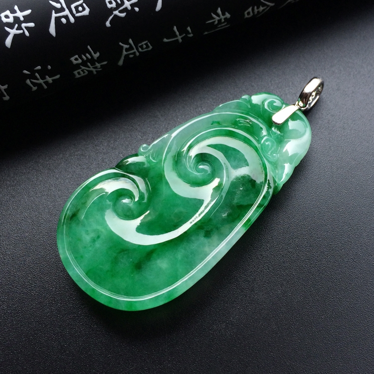 首页 >> (超值推荐)糯冰种翠色如意挂件