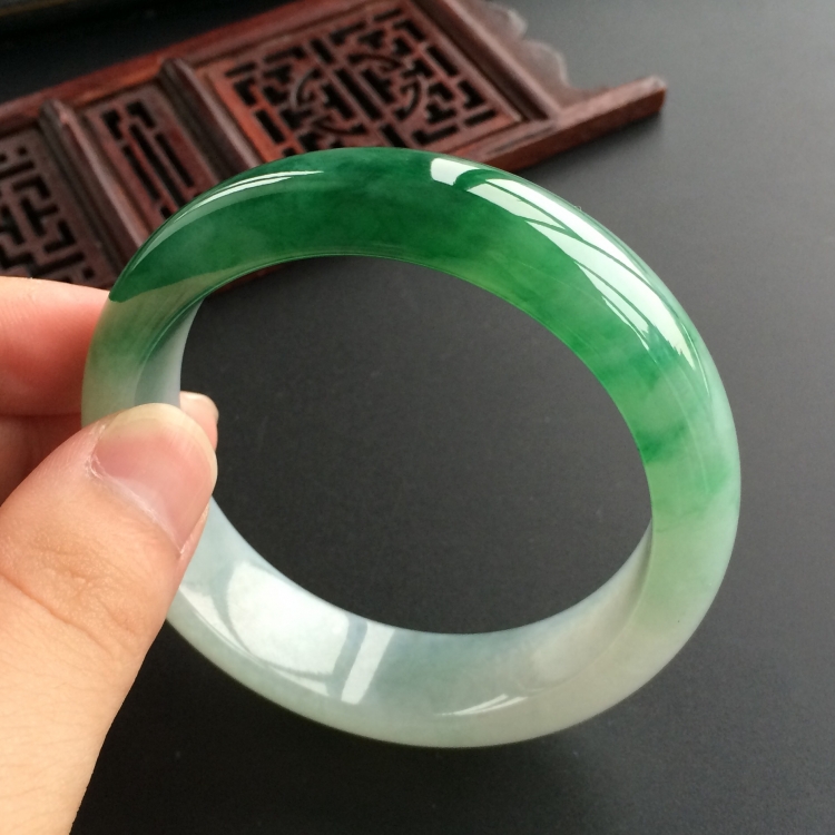 (超值推荐)糯冰种飘绿花手镯(57.5mm)