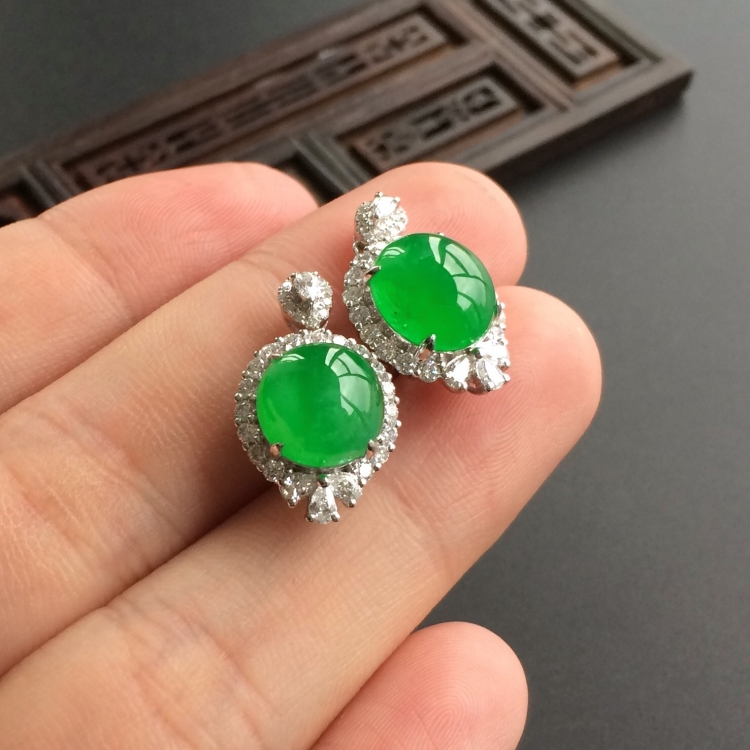 首页 >> (超值推荐)冰种阳绿镶白金钻石耳钉