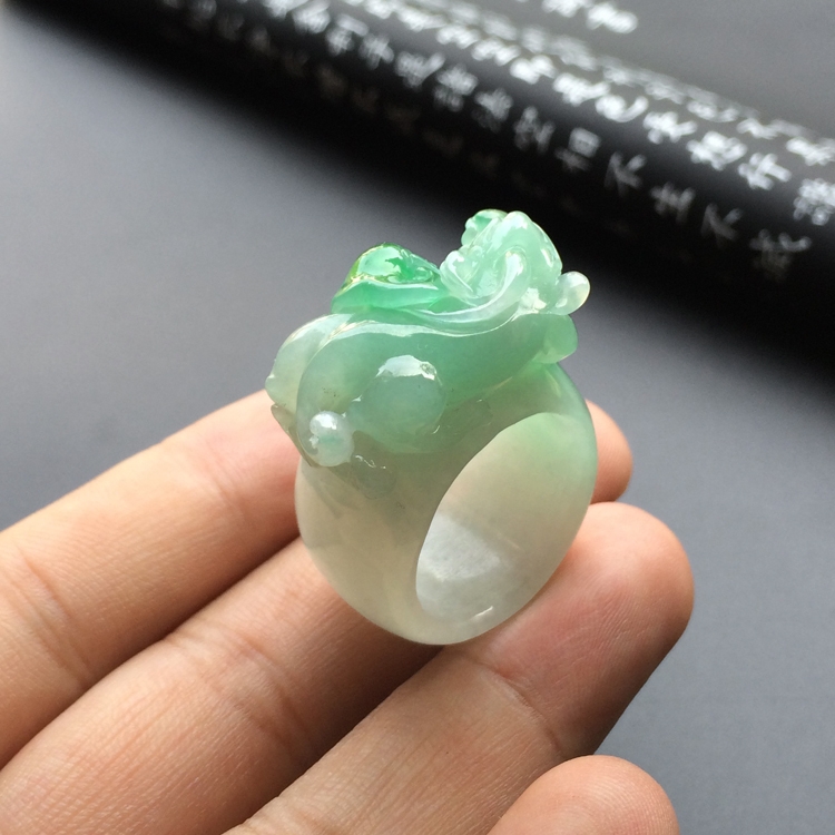 首页 >> (超值推荐)糯冰种飘翠貔貅指环