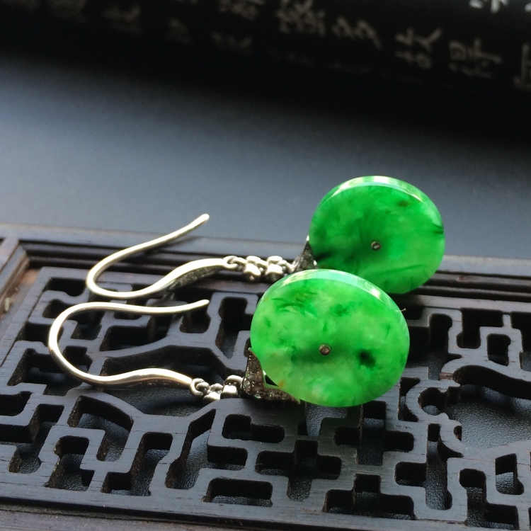 首页 >> (超值推荐)镶白金钻石糯冰种翠色平安扣耳坠