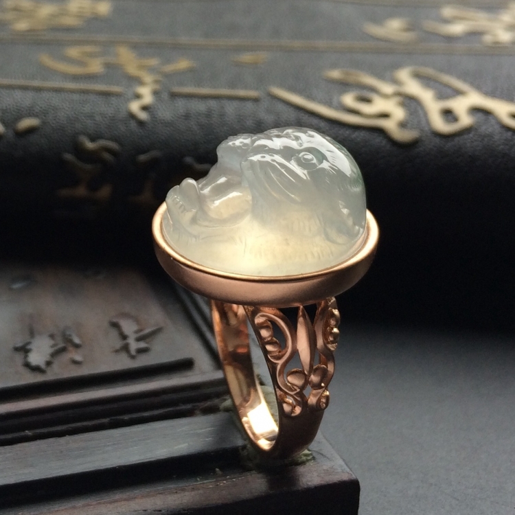 首页 >> (超值推荐)镶玫瑰金冰种飘花虎头戒指