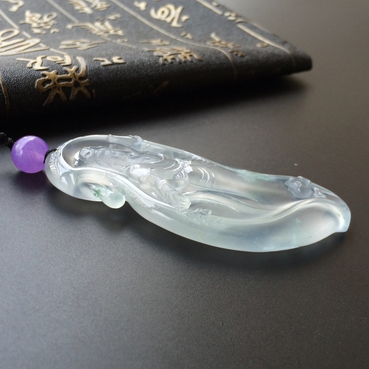 首页 >> (超值推荐)玻璃种略飘花杨柳净瓶观音挂件