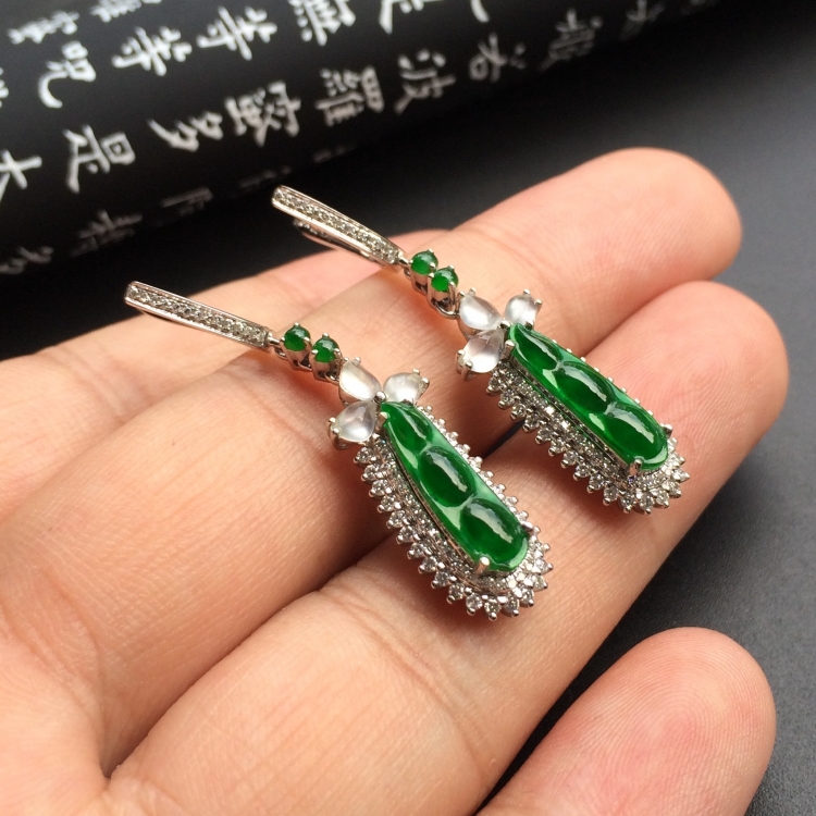 首页 >> (超值推荐)镶白金钻石冰种浓阳绿四季豆耳坠
