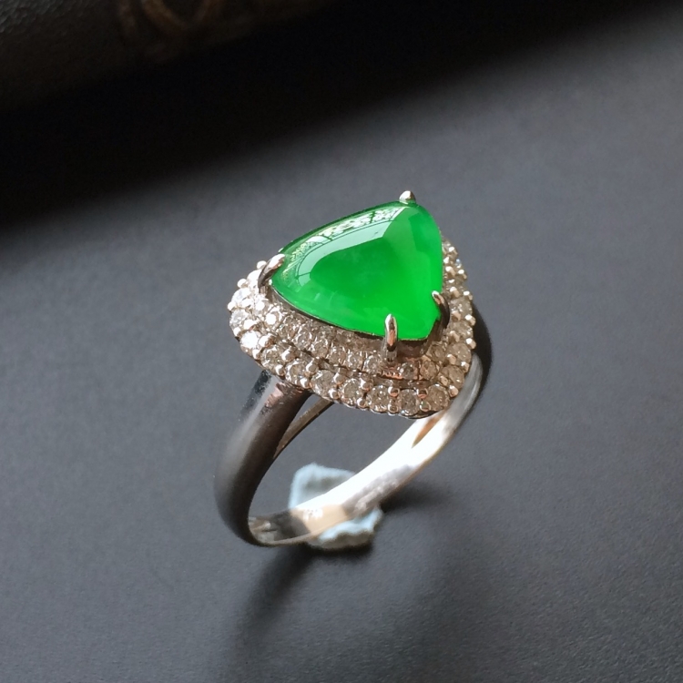 首页 >> (超值推荐)冰种阳绿镶白金钻石心形戒指