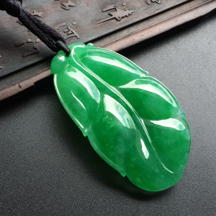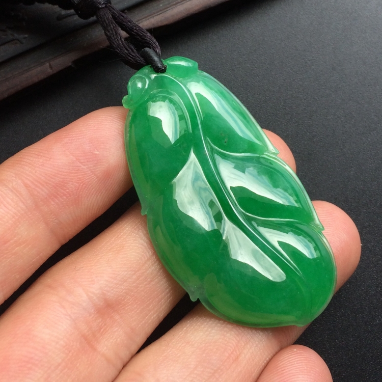 首页 >> (超值推荐)糯冰种阳绿玉叶挂件