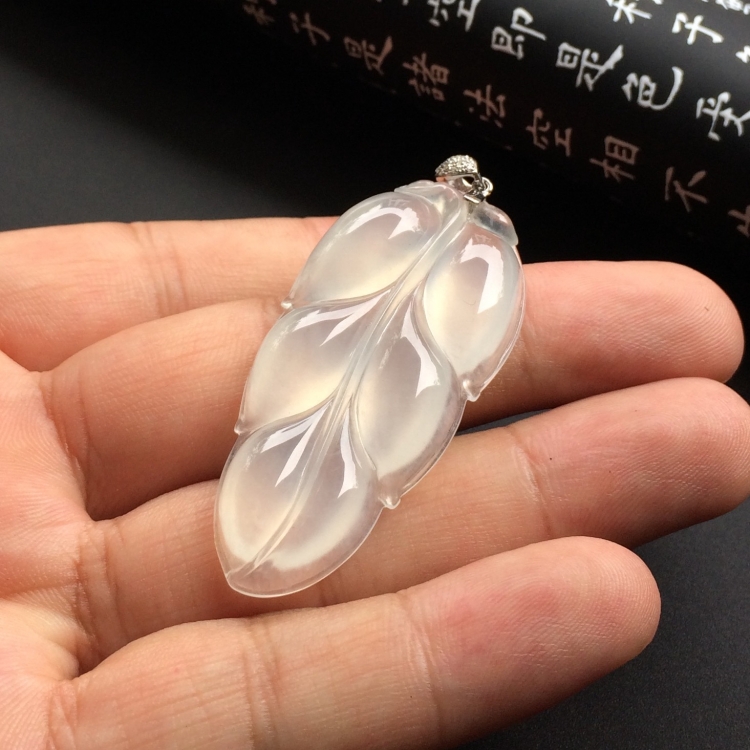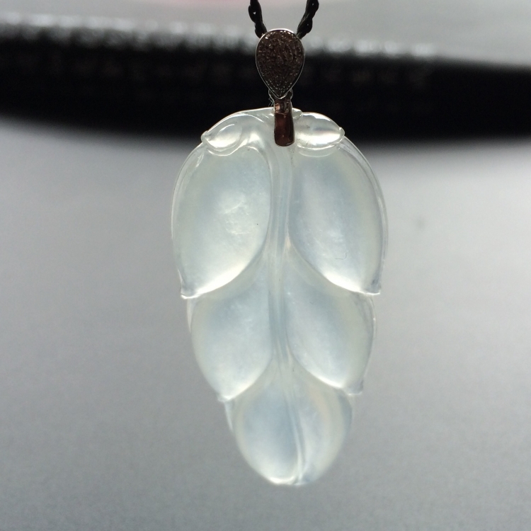 首页 >> (超值推荐)冰玻种无色玉叶挂件